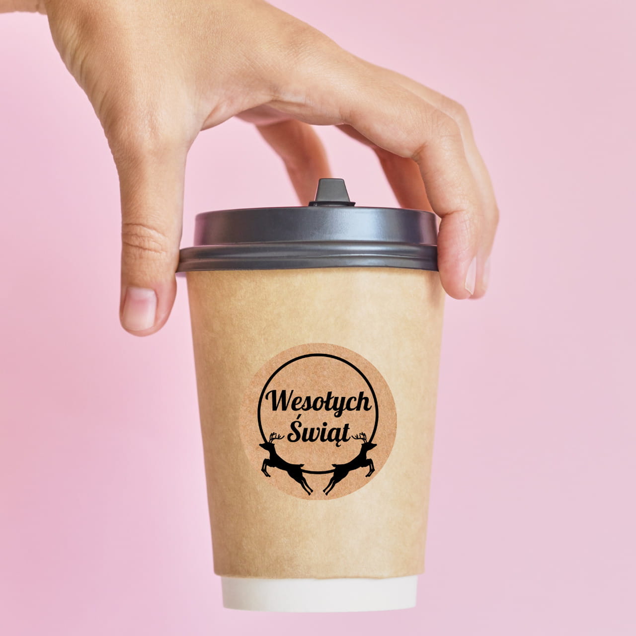 Naklejki WESOŁYCH ŚWIĄT - Papier EKO KRAFT - renifery - etykiety 5cm